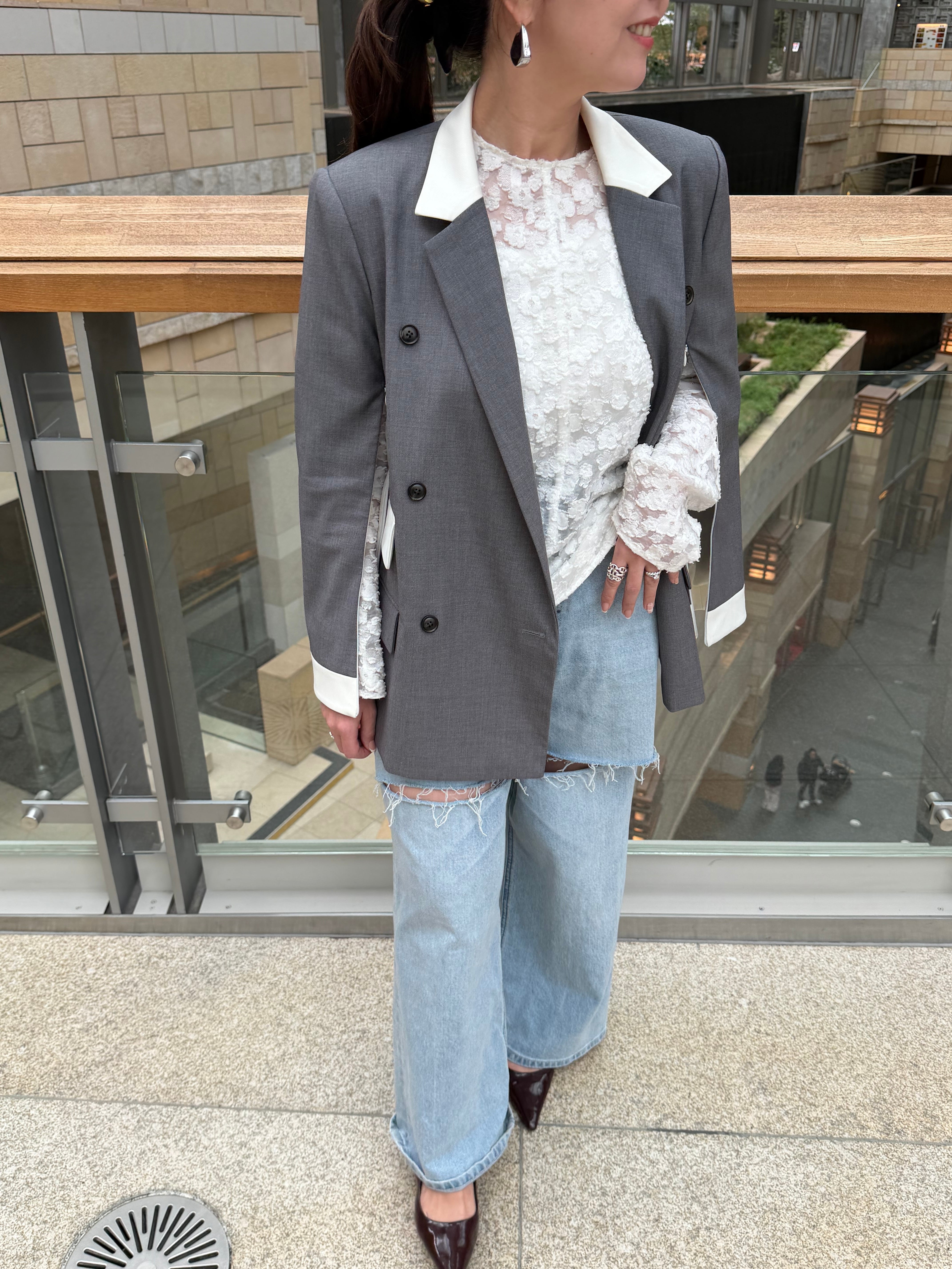 アクセントになったダブルジャケット。